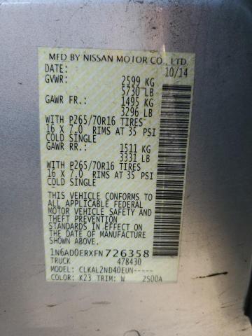 | VIN: | 1N6AD0ERXFN726358 |