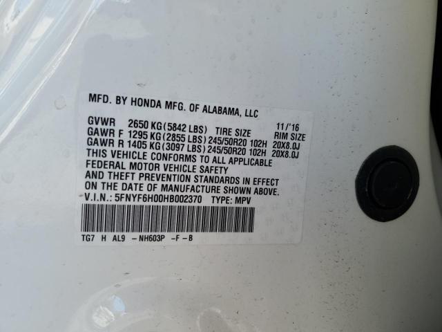 | VIN: | 5FNYF6H00HB002370 |