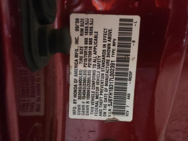 | VIN: | 5J6YH18317L002391 |