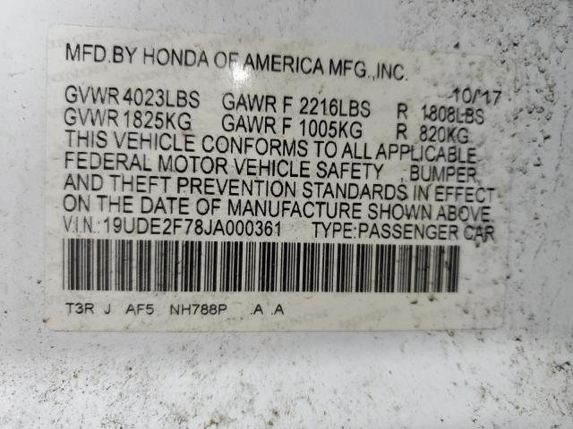 | VIN: | 19UDE2F78JA000361 |