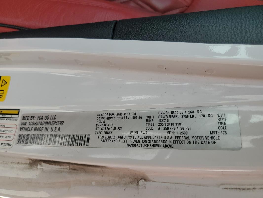 | VIN: | 1C6HJTAG9ML524692 |