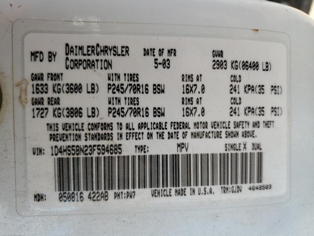 | VIN: | 1D4HS58N23F594685 |