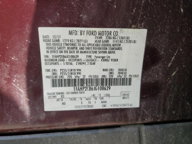 | VIN: | 1FAHP2E86JG108629 |