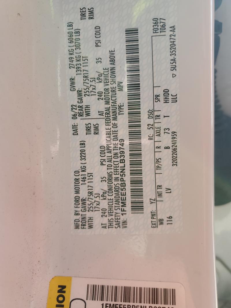 | VIN: | 1FMEE5BP5NLB39749 |