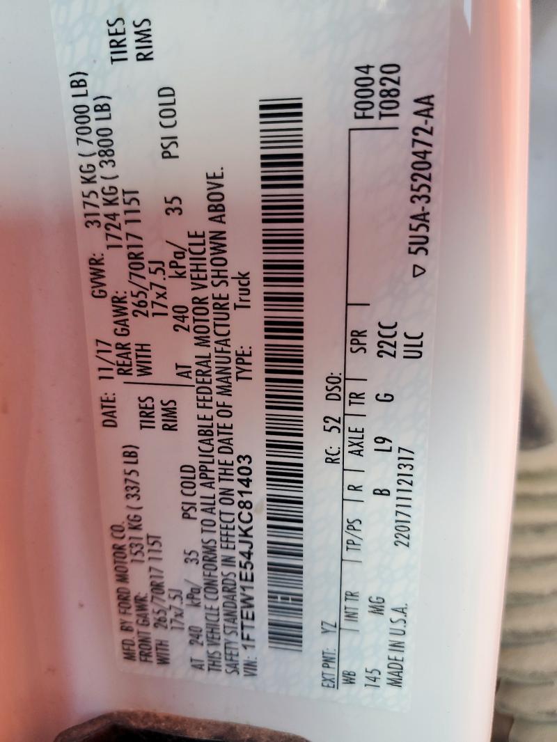 | VIN: | 1FTEW1E54JKC81403 |