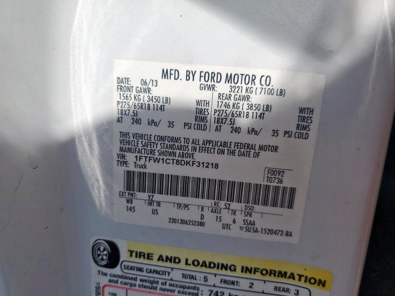 | VIN: | 1FTFW1CT8DKF31218 |