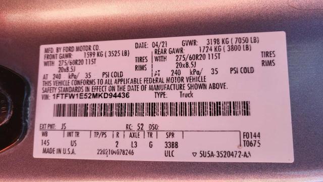 | VIN: | 1FTFW1E52MKD94436 |