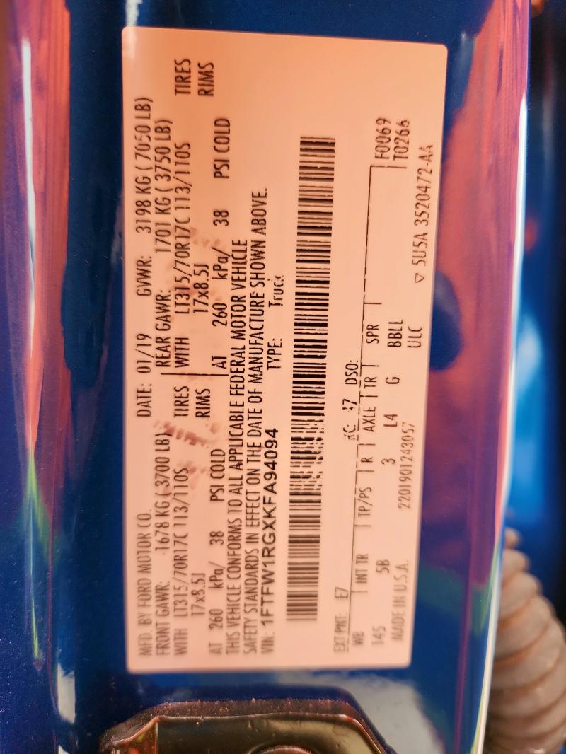 | VIN: | 1FTFW1RGXKFA94094 |