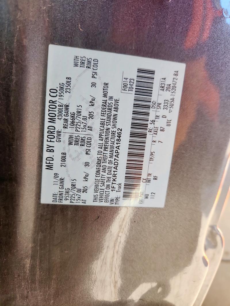 | VIN: | 1FTKR1AD7APA18462 |