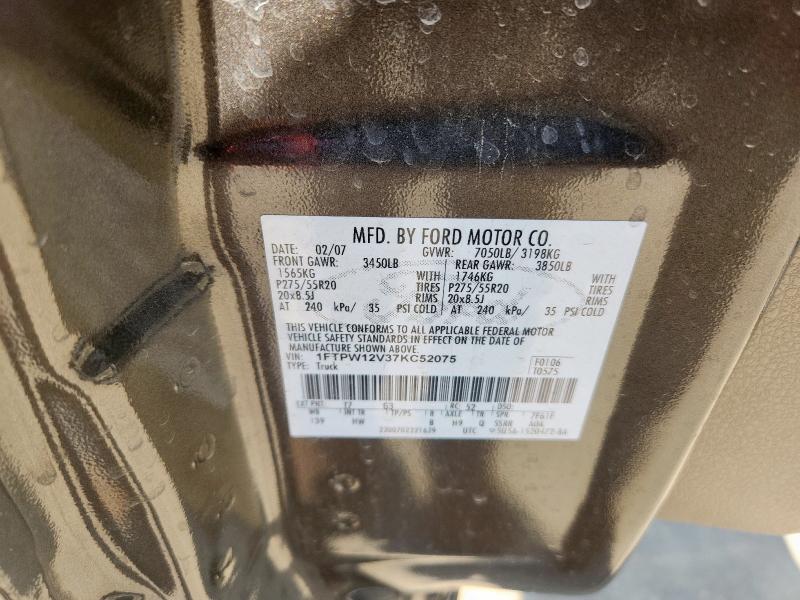 | VIN: | 1FTPW12V37KC52075 |