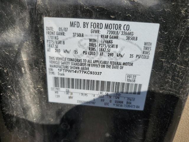 | VIN: | 1FTPW14V77KC93337 |