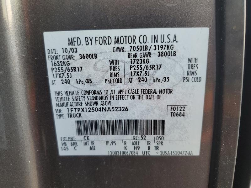 | VIN: | 1FTPX12504NA52326 |