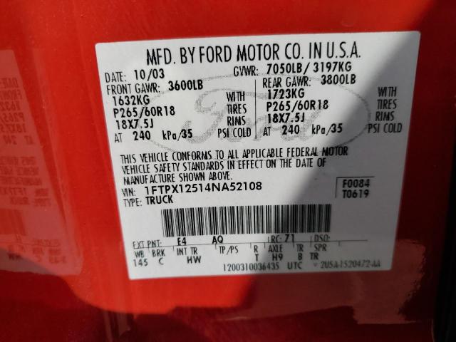| VIN: | 1FTPX12514NA52108 |