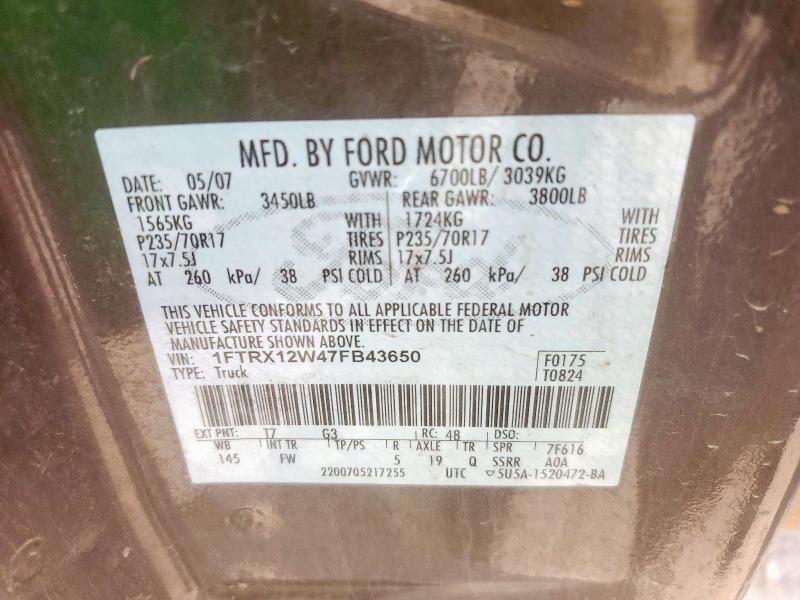 | VIN: | 1FTRX12W47FB43650 |