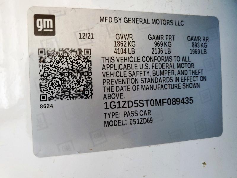 | VIN: | 1G1ZD5ST0MF089435 |