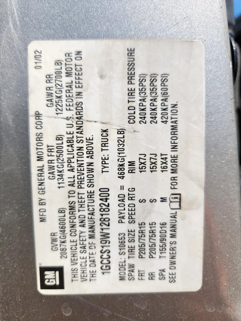 | VIN: | 1GCCS19W128182400 |