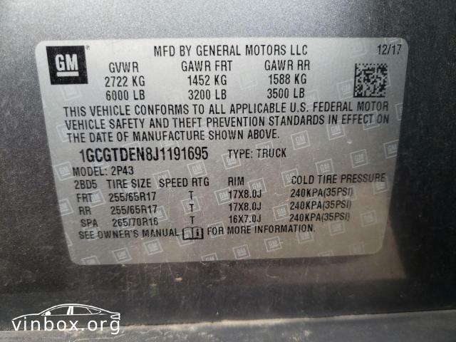 | VIN: | 1GCGTDEN8J1191695 |