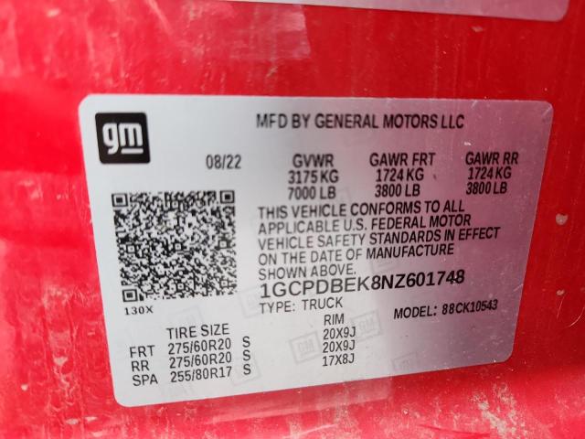 VIN: 1GCPDBEK8NZ601748