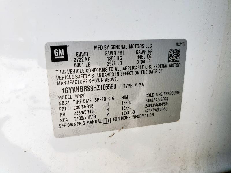 | VIN: | 1GYKNBRS8HZ106580 |