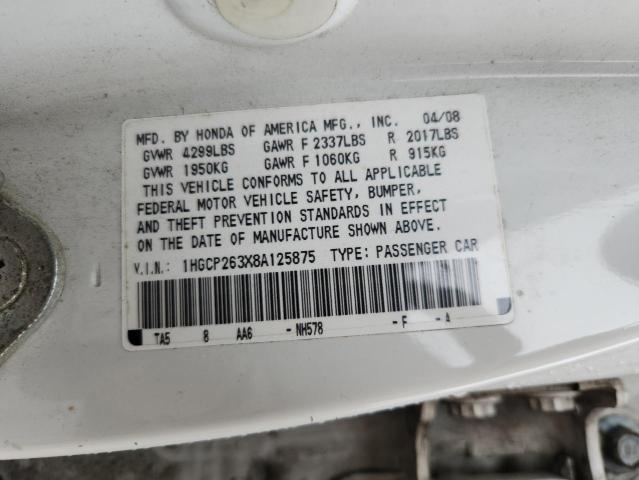 | VIN: | 1HGCP263X8A125875 |
