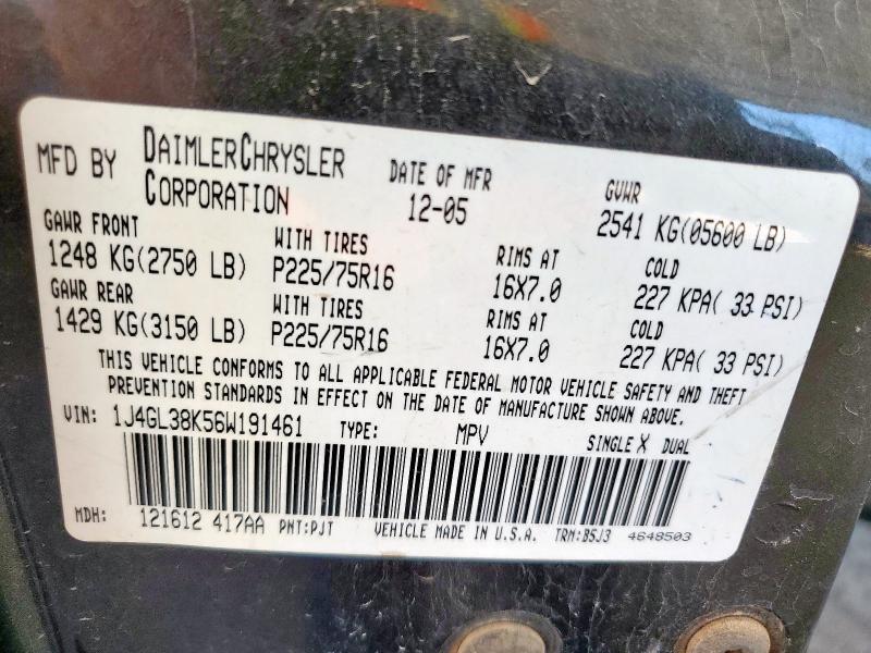 | VIN: | 1J4GL38K56W191461 |
