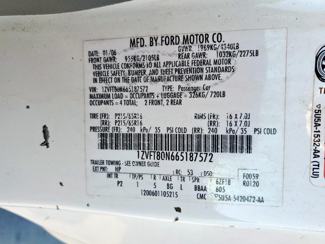 | VIN: | 1ZVFT80N665187572 |