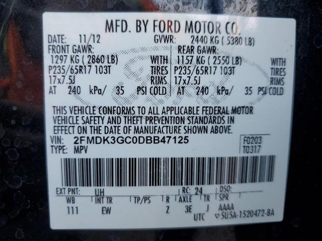 | VIN: | 2FMDK3GC0DBB47125 |