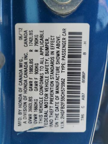 VIN: 2HGFB2F59CH575962