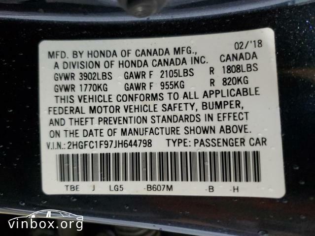 VIN: 2HGFC1F97JH644798