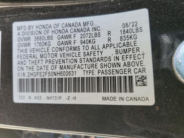 VIN: 2HGFE2F50NH600631