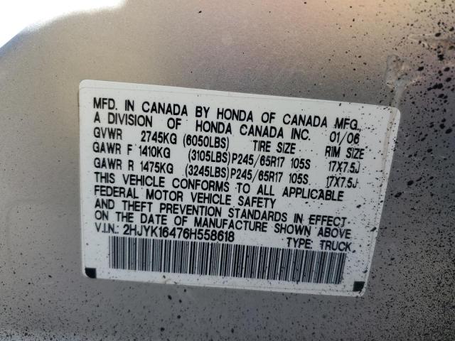 | VIN: | 2HJYK16476H558618 |