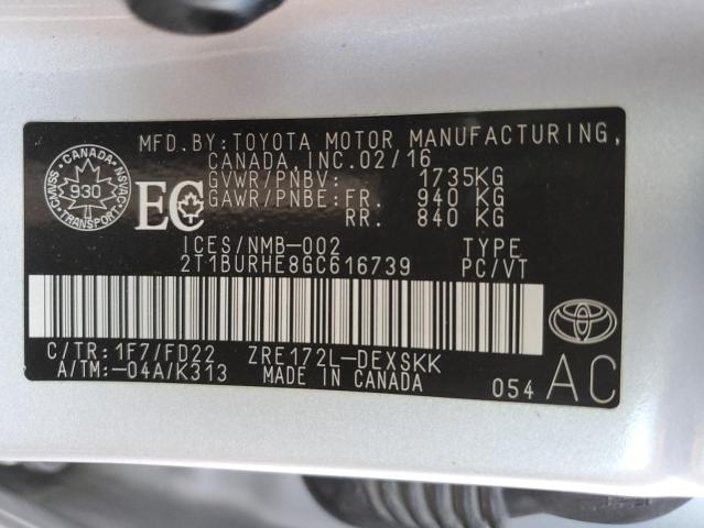 | VIN: | 2T1BURHE8GC616739 |