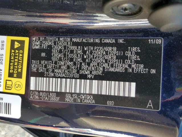 | VIN: | 2T2BK1BA8AC039100 |