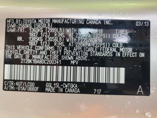 | VIN: | 2T2BK1BA8DC200341 |