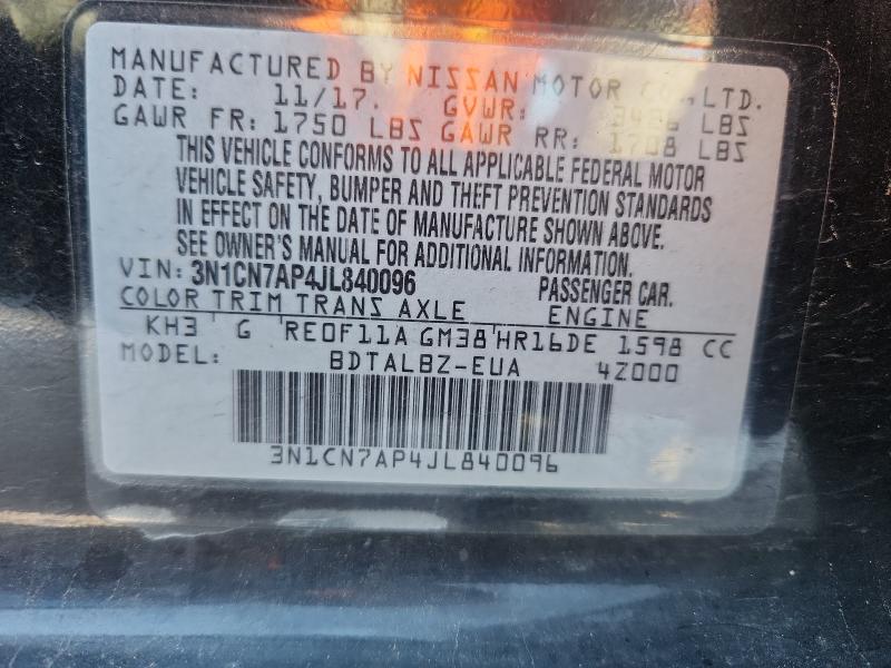 | VIN: | 3N1CN7AP4JL840096 |