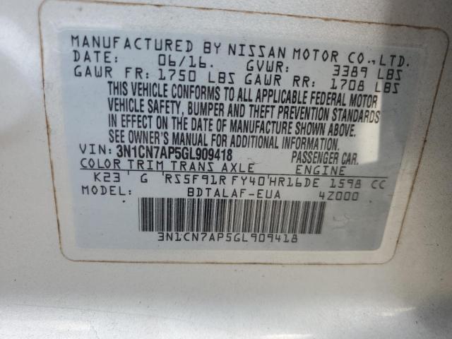 | VIN: | 3N1CN7AP5GL909418 |