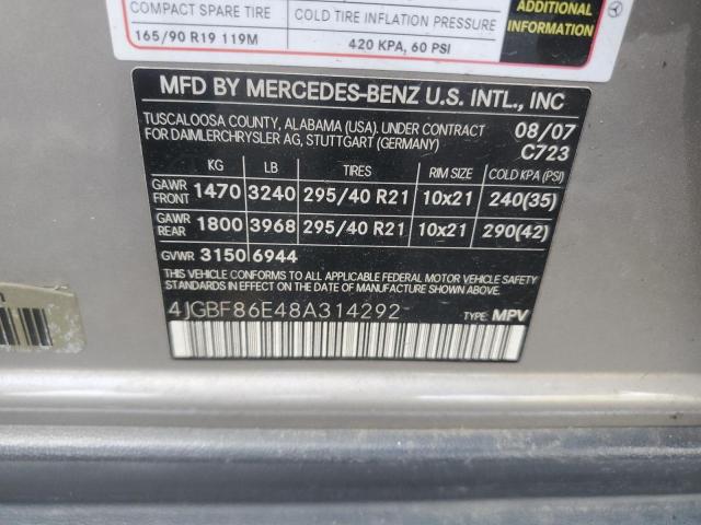 | VIN: | 4JGBF86E48A314292 |
