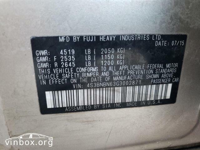 | VIN: | 4S3BNBN63G3002871 |