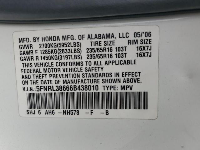 | VIN: | 5FNRL38666B438010 |