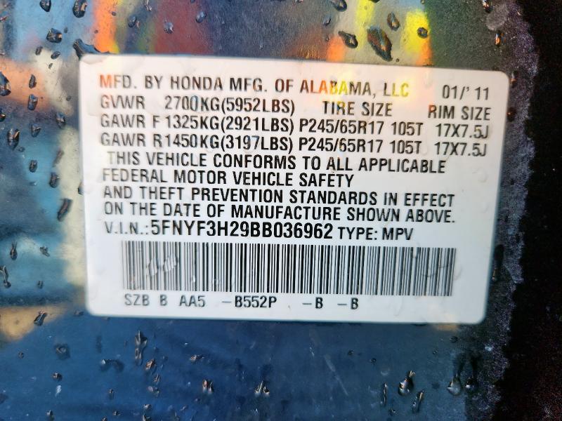 VIN: 5FNYF3H29BB036962