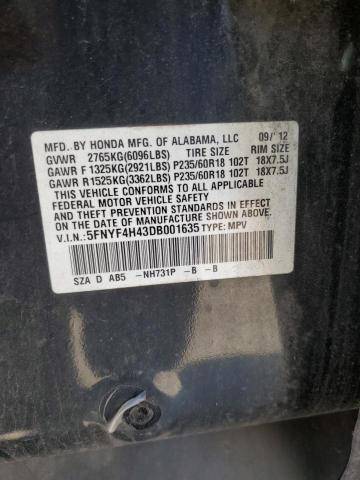 | VIN: | 5FNYF4H43DB001635 |