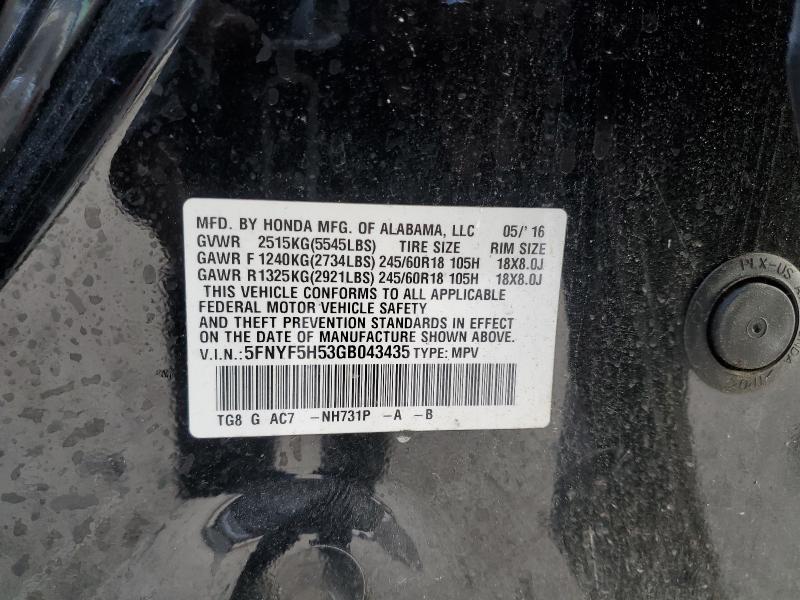 VIN: 5FNYF5H53GB043435