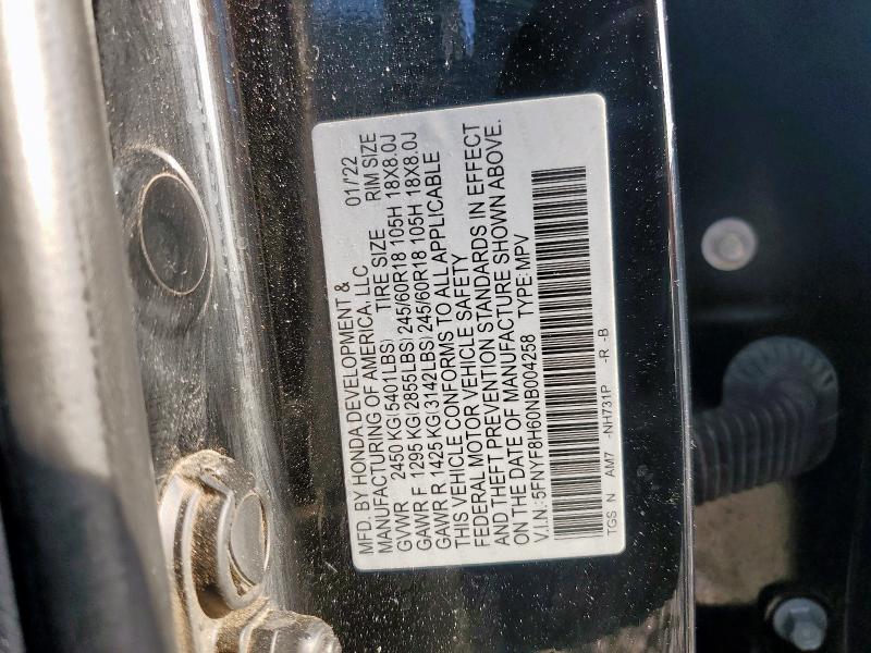 | VIN: | 5FNYF8H60NB004258 |