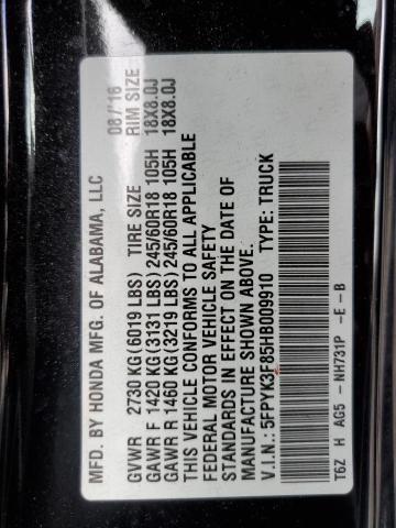 | VIN: | 5FPYK3F85HB009910 |
