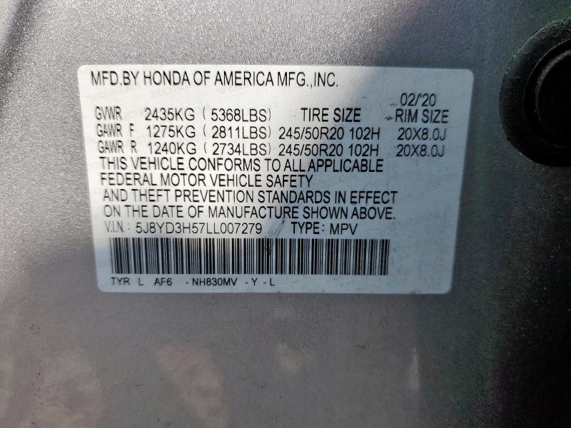 | VIN: | 5J8YD3H57LL007279 |