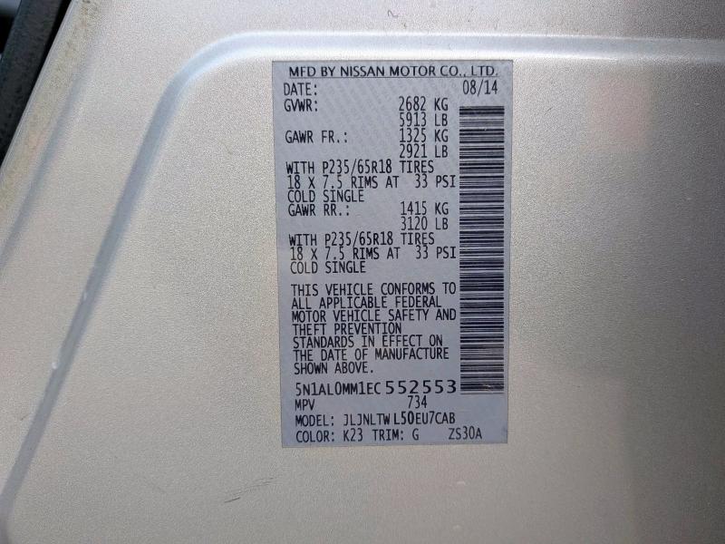| VIN: | 5N1AL0MM1EC552553 |