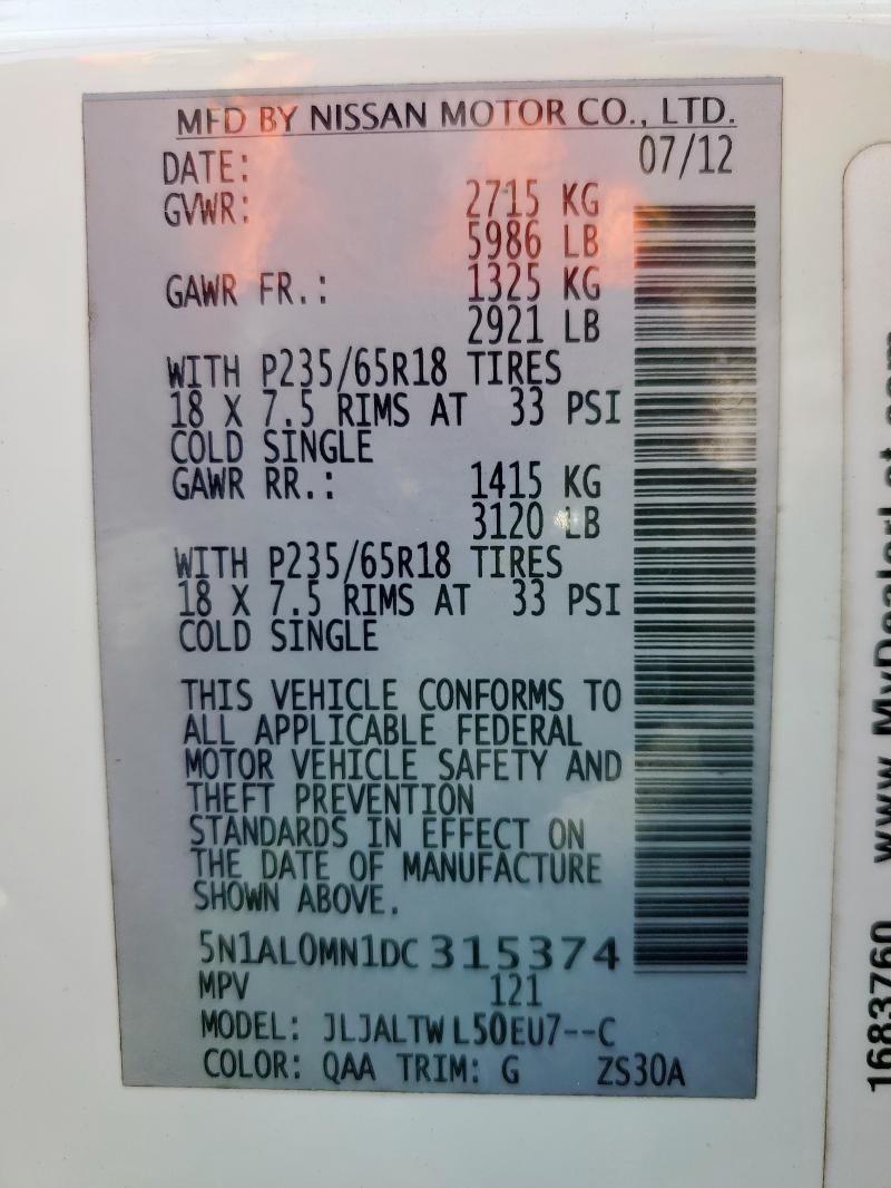 | VIN: | 5N1AL0MN1DC315374 |