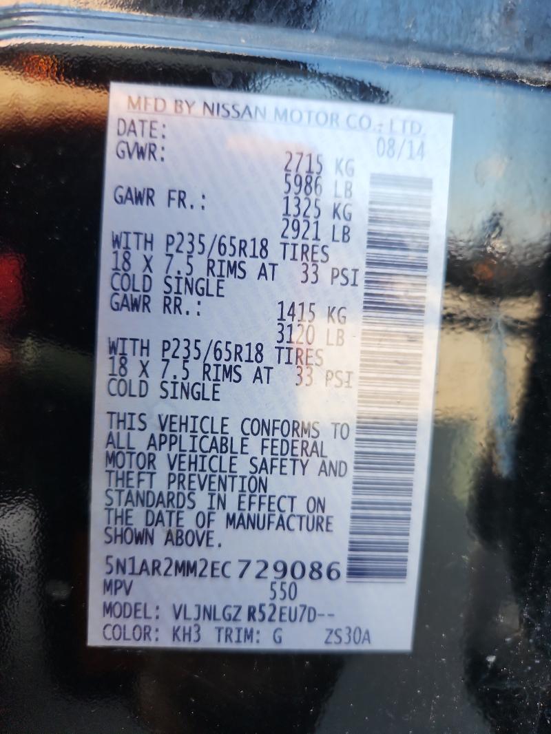 | VIN: | 5N1AR2MM2EC729086 |