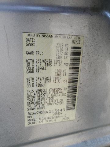 | VIN: | 5N1AZ2MG8GN113443 |