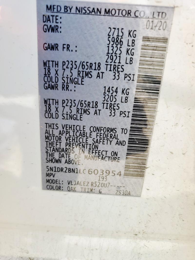 | VIN: | 5N1DR2BN1LC603954 |